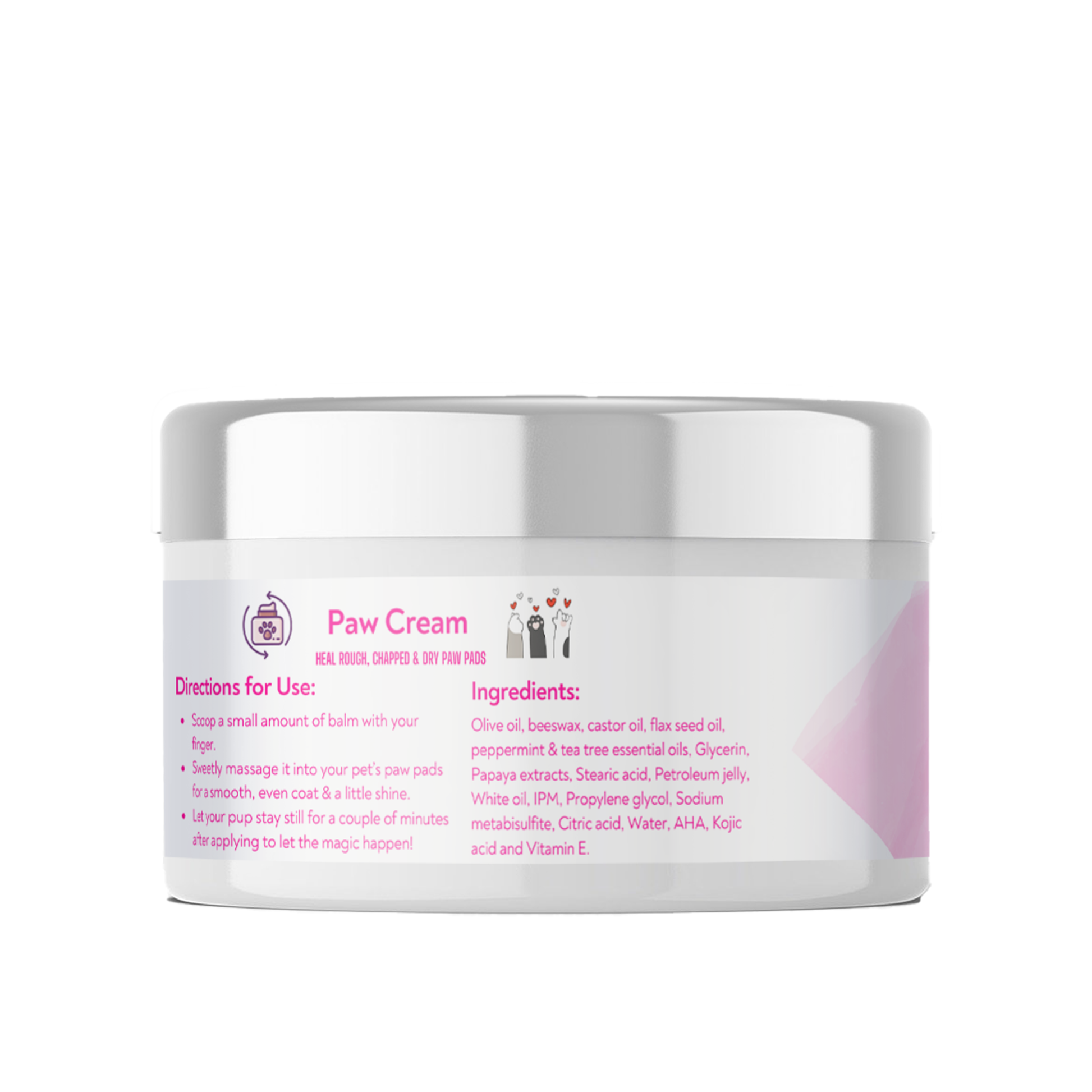 | How to Use | Gently massage a small amount onto your dog’s paws, focusing on cracks or dry areas. Use regularly for soft, healthy paws. |